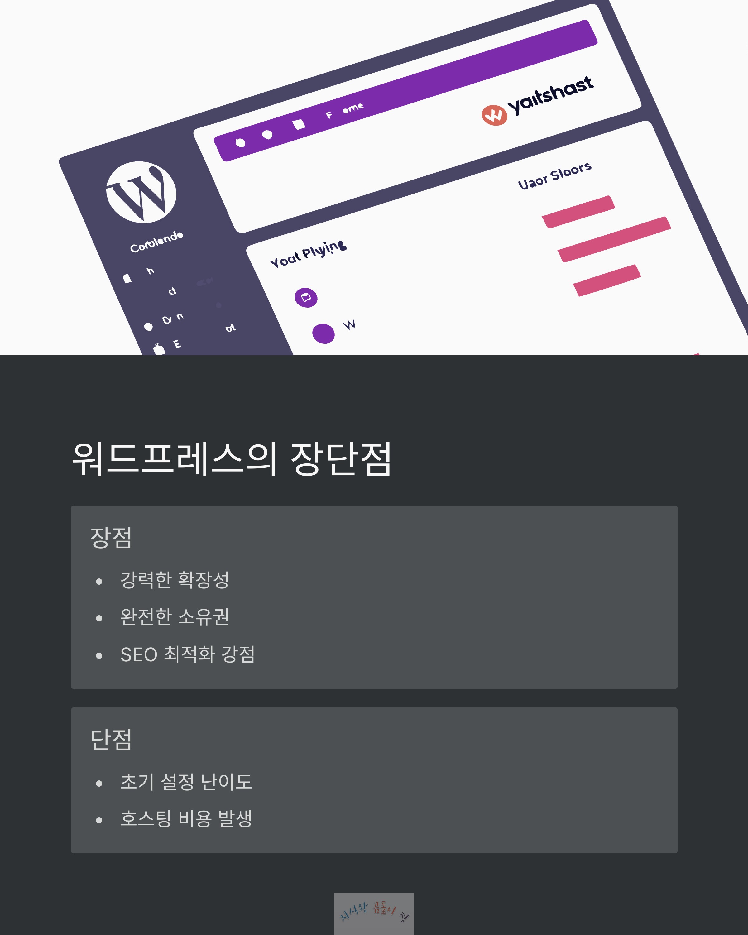 다만, 워드프레스는 초기 세팅에 비용과 시간이 더 들어갑니다.