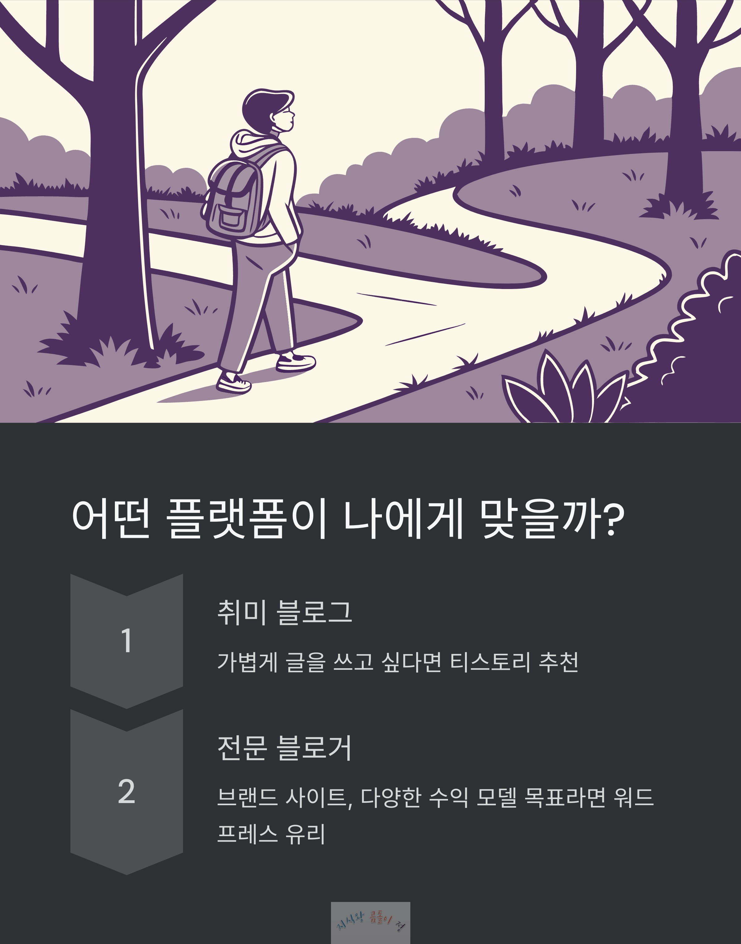 만약 "취미 블로그"를 운영하거나 "가볍게 글을 쓰고 싶다"는 목표라면 티스토리가 좋은 선택입니다.