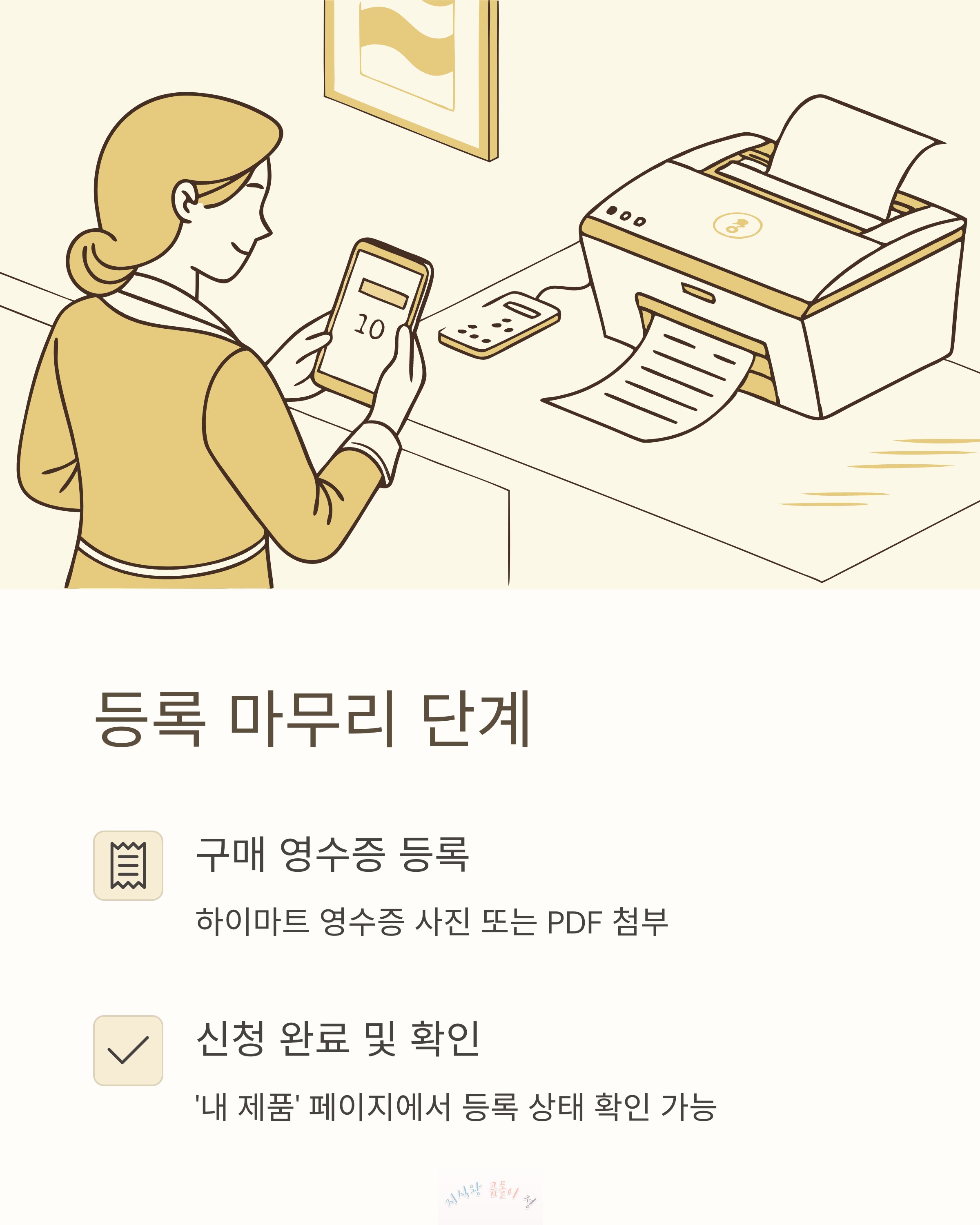 하이마트에서 받은 구매 영수증을 사진으로 찍어서 첨부하면 돼요. PDF 파일로도 가능하니 편한 방법을 선택하세요.