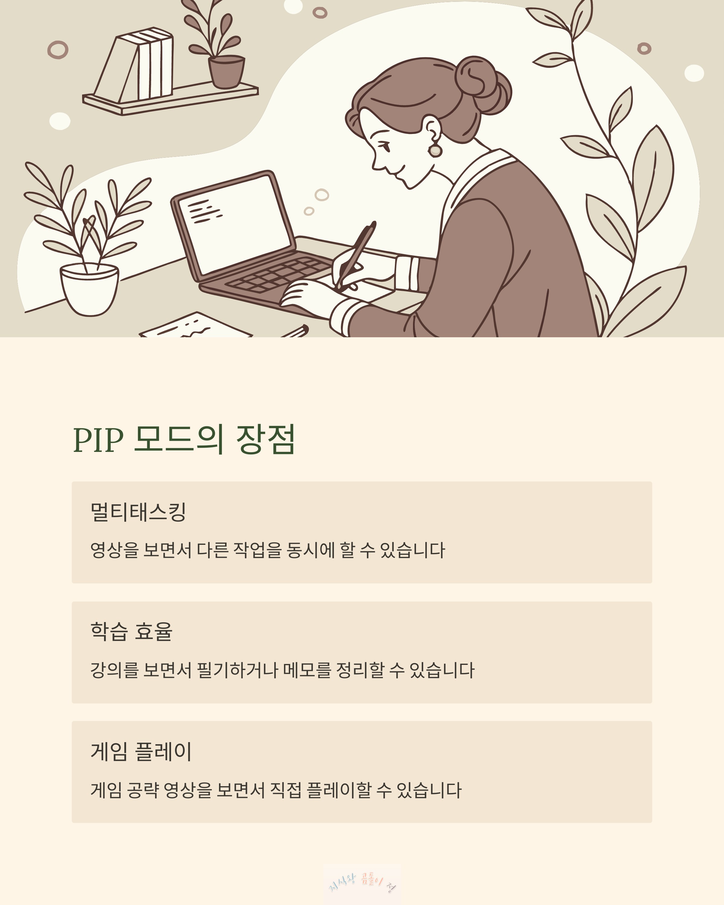 여러 작업을 동시에 할 때 PIP 모드는 완전한 멀티태스킹 도우미입니다.