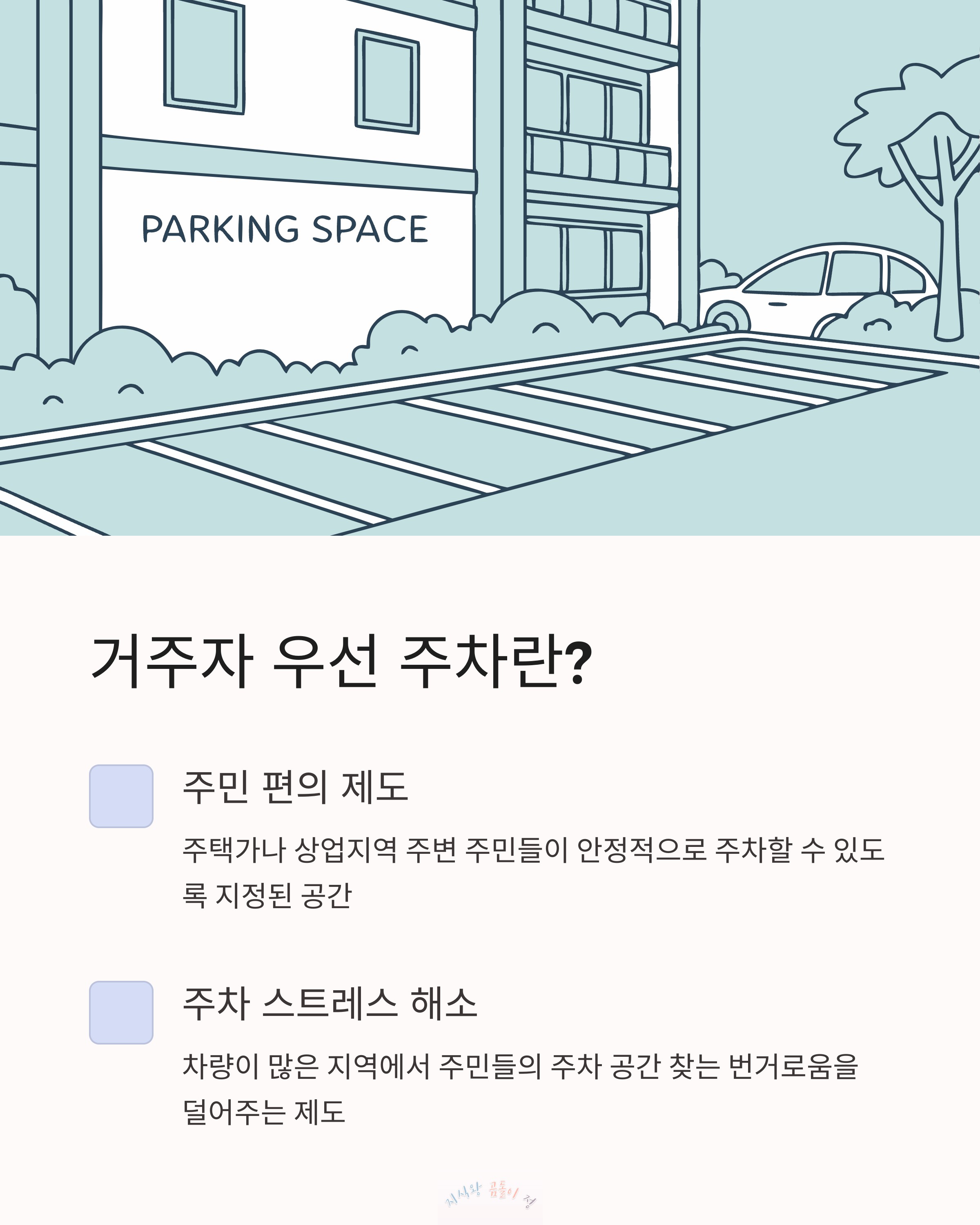 거주자 우선 주차는 단순히 "거주자만의 공간"이 아니라, 주민과 방문객이 서로 배려하며 사용하는 공간이란 점이 인상 깊었어요.