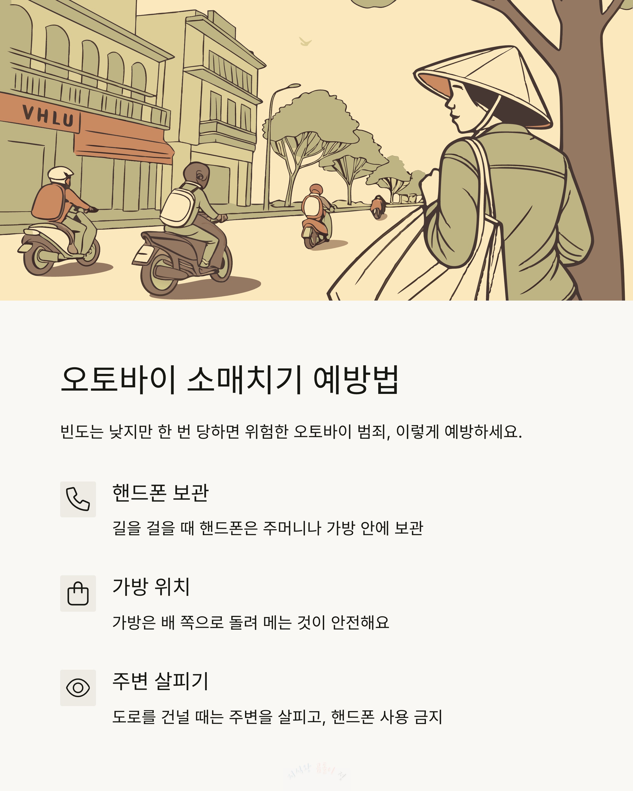 오토바이 소매치기, 빈도는 낮지만 조심은 필수