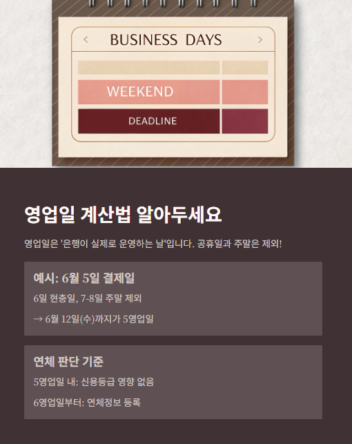 5영업일 안에 해결하면 ‘연체 기록’ 자체가 남지 않습니다.