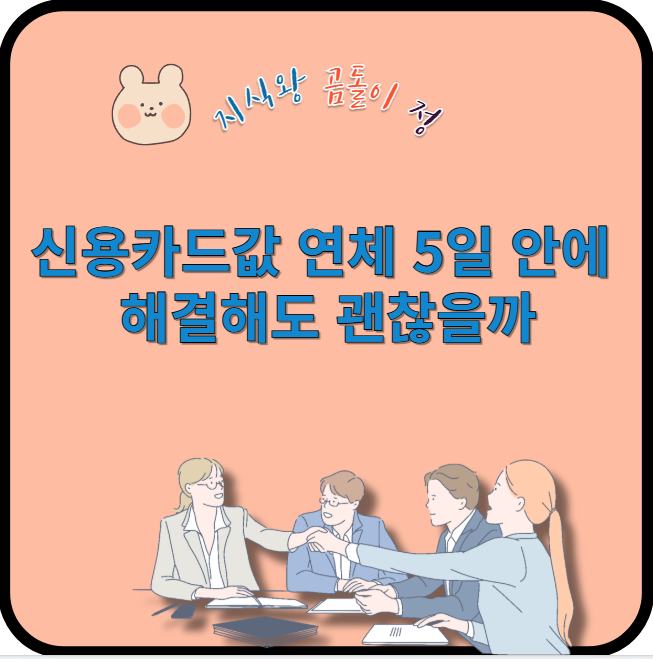 신용카드값 연체나 대출금 연체가 5영업일 이내라면 신용등급에는 영향이 없습니다. 하지만 모든 금융사 기록에는 남으니 주의가 필요합니다.