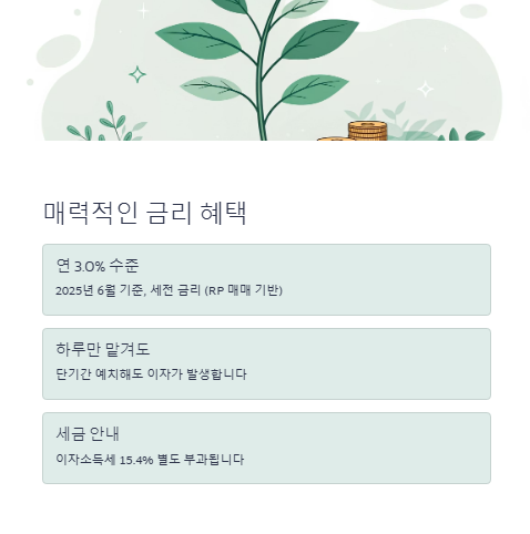 돈을 잠그지 않으면서도 이자를 받을 수 있다는 건 생각보다 강력한 매력입니다.