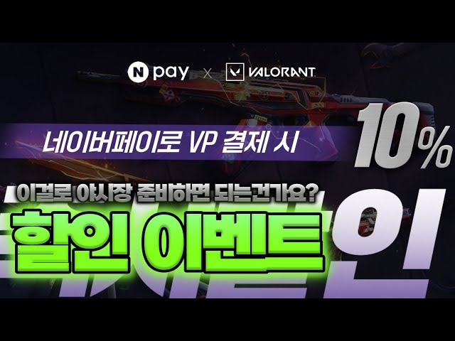 발로란트와 네이버페이가 협력하여 다양한 할인 이벤트를 진행합니다. 이벤트 기간 동안 결제하면 추가 적립 또는 즉시 할인을 받을 수도 있습니다.