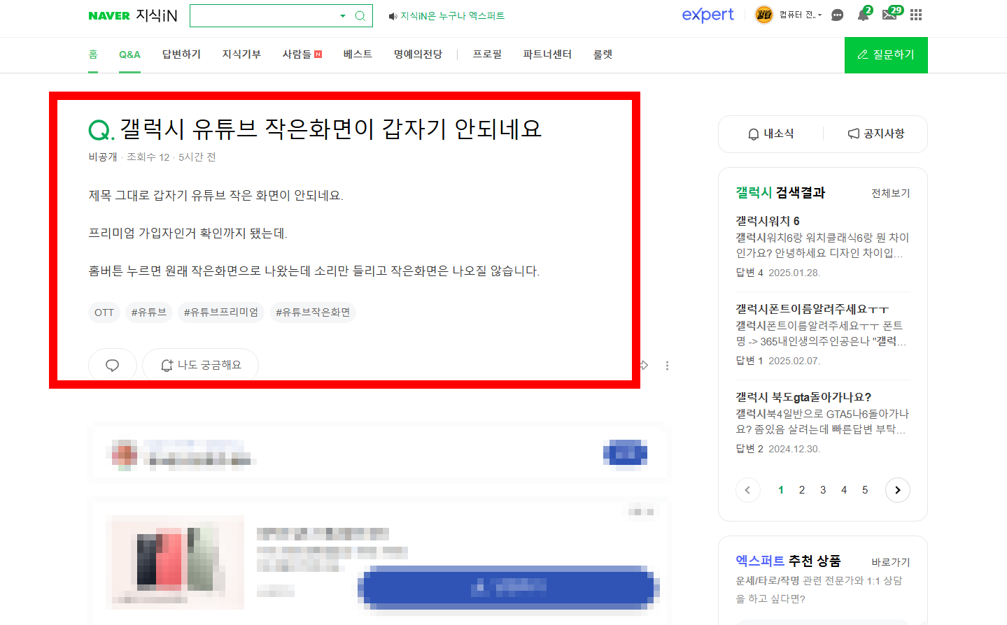 갤럭시 스마트폰에서 유튜브 PIP(그림 속 그림) 모드가 작동하지 않을 경우,