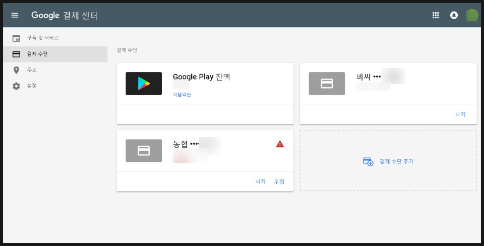 구글 플레이에서 카드 삭제하면 결제 안될까?