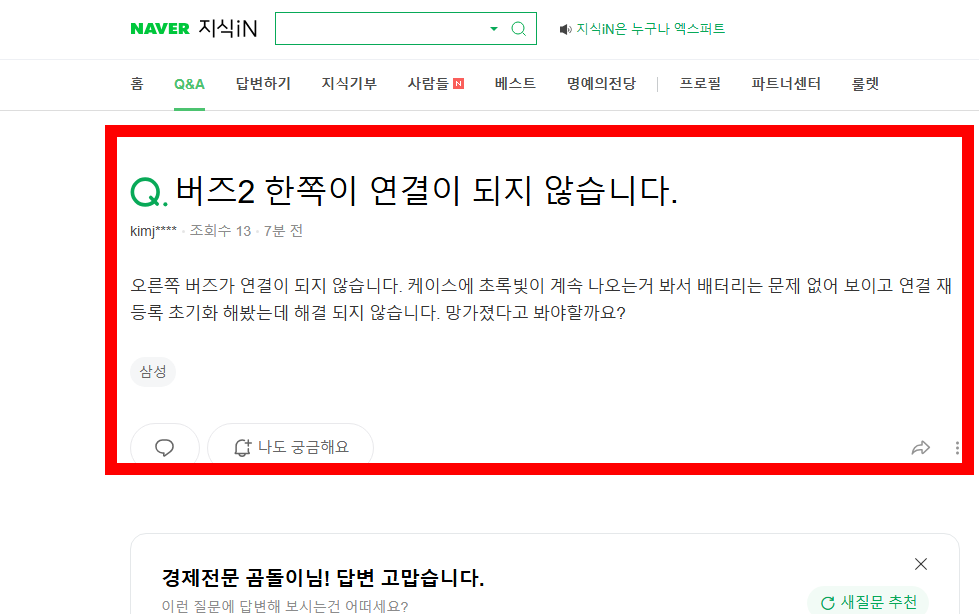 갤럭시 버즈2 오른쪽 이어버드 연결 문제 해결 방법