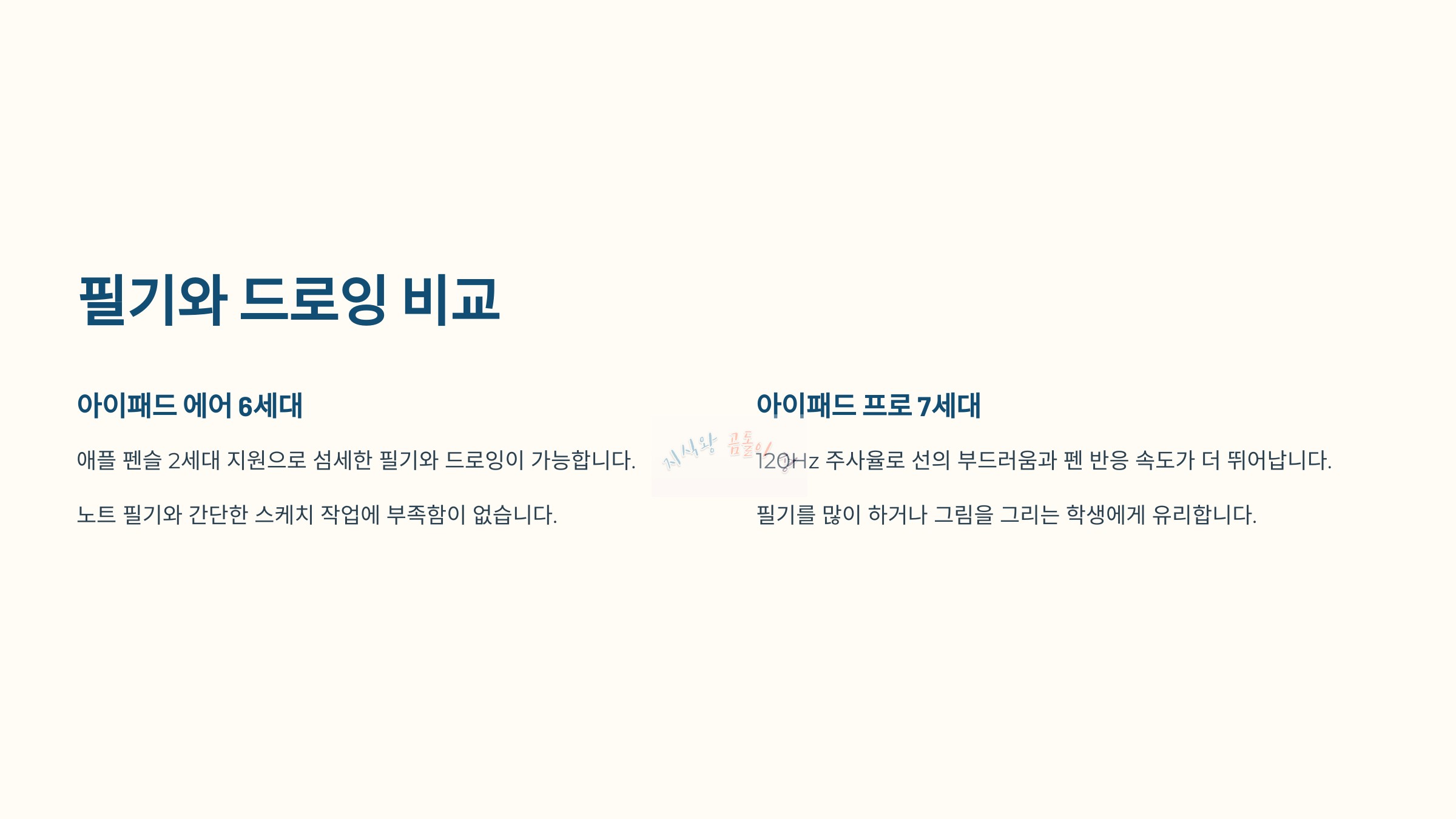 필기를 많이 하거나 그림을 그리는 학생이라면 프로 모델이 더 유리합니다.
